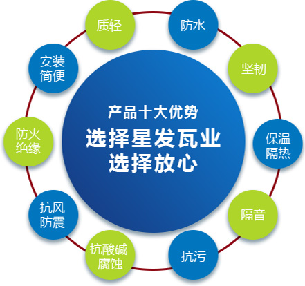 佛山市禅城区星发瓦业有限公司,专注从事塑料建材的研发、生产和销售。公司拥有研发团队,设备、工艺、管理严格;所生产的新型环保屋面建材产品,具有质轻、防水、坚韧、保温隔热、隔音、抗污、抗酸碱腐蚀、抗风防震、防火绝缘、安装简便等优点,是园林建设、工业厂房、市场仓库、温室养殖的屋面建材。公司具有良好的软硬件设施,并通过ISO9001:2008质量体系认证,保证了产品质量的稳定性和可靠性,更获评为“中国优质制造商”和“广东优质制造商”。
